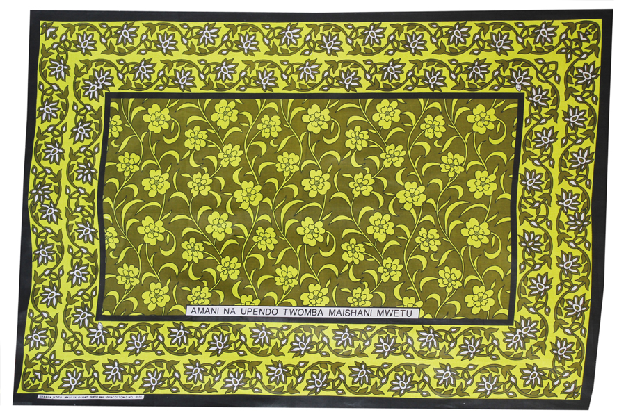 【 カンガ布 】 オリーブ × シャトルーズグリーン 植物 (10648)