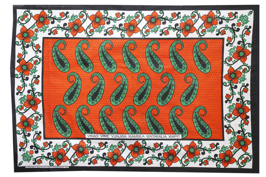民族布 Kanga ( カンガ ) 。独特の色と柄、一枚一枚にセイイングと呼ばれるメッセージが書かれているのが特徴です。