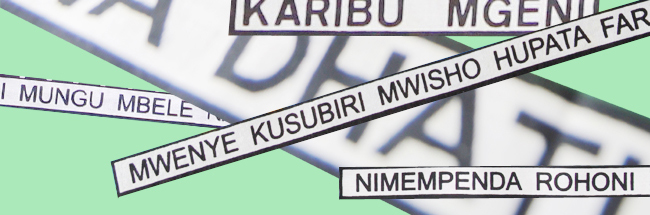 ・ Jina (ジナ) と呼ばれるスワヒリ語で書かれたメッセージ