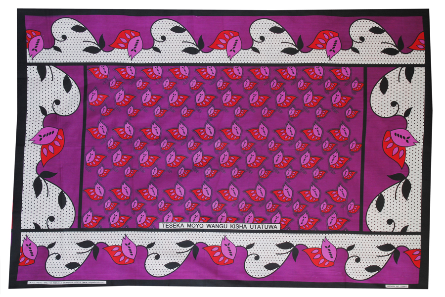 民族布 Kanga ( カンガ ) 。独特の色と柄、一枚一枚にセイイングと呼ばれるメッセージが書かれているのが特徴です。