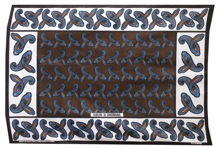 【 カンガ布 】ボルドー × ナイルブルー ペイズリー