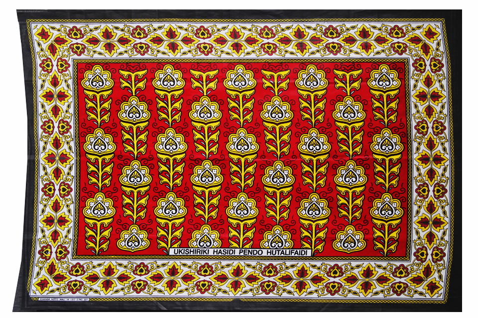 民族布 Kanga ( カンガ ) 。独特の色と柄、一枚一枚にセイイングと呼ばれるメッセージが書かれているのが特徴です。
