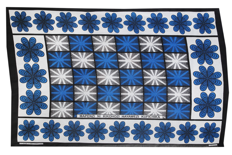 民族布 Kanga ( カンガ ) 。独特の色と柄、一枚一枚にセイイングと呼ばれるメッセージが書かれているのが特徴です。