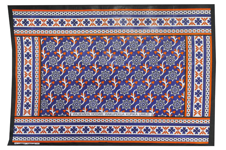 民族布 Kanga ( カンガ ) 。独特の色と柄、一枚一枚にセイイングと呼ばれるメッセージが書かれているのが特徴です。