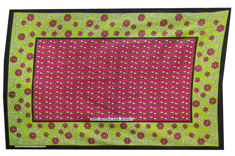 民族布 Kanga ( カンガ ) 。独特の色と柄、一枚一枚にセイイングと呼ばれるメッセージが書かれているのが特徴です。