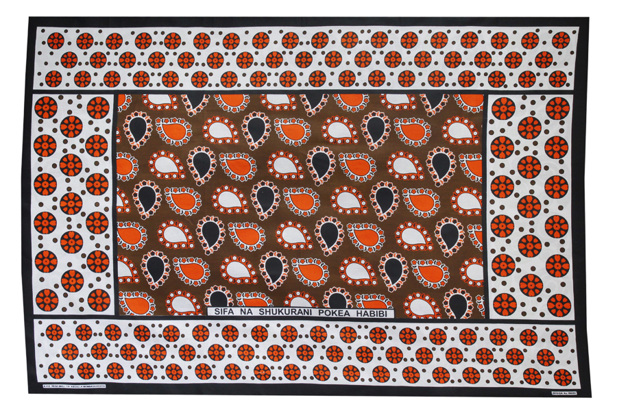 【 カンガ布 】 ブラウン × スカーレッド ペイズリー