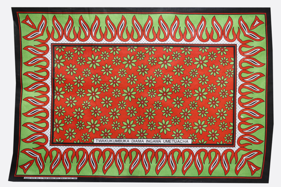 【 カンガ布 】 ルージュオレンジ × グリーン フラワー