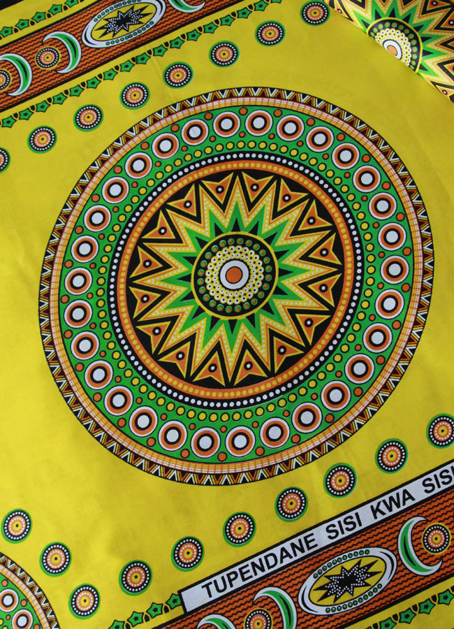 民族布 Kanga ( カンガ )独特の色と柄、一枚一枚にセイイングと呼ばれるメッセージが書かれているのが特徴です。